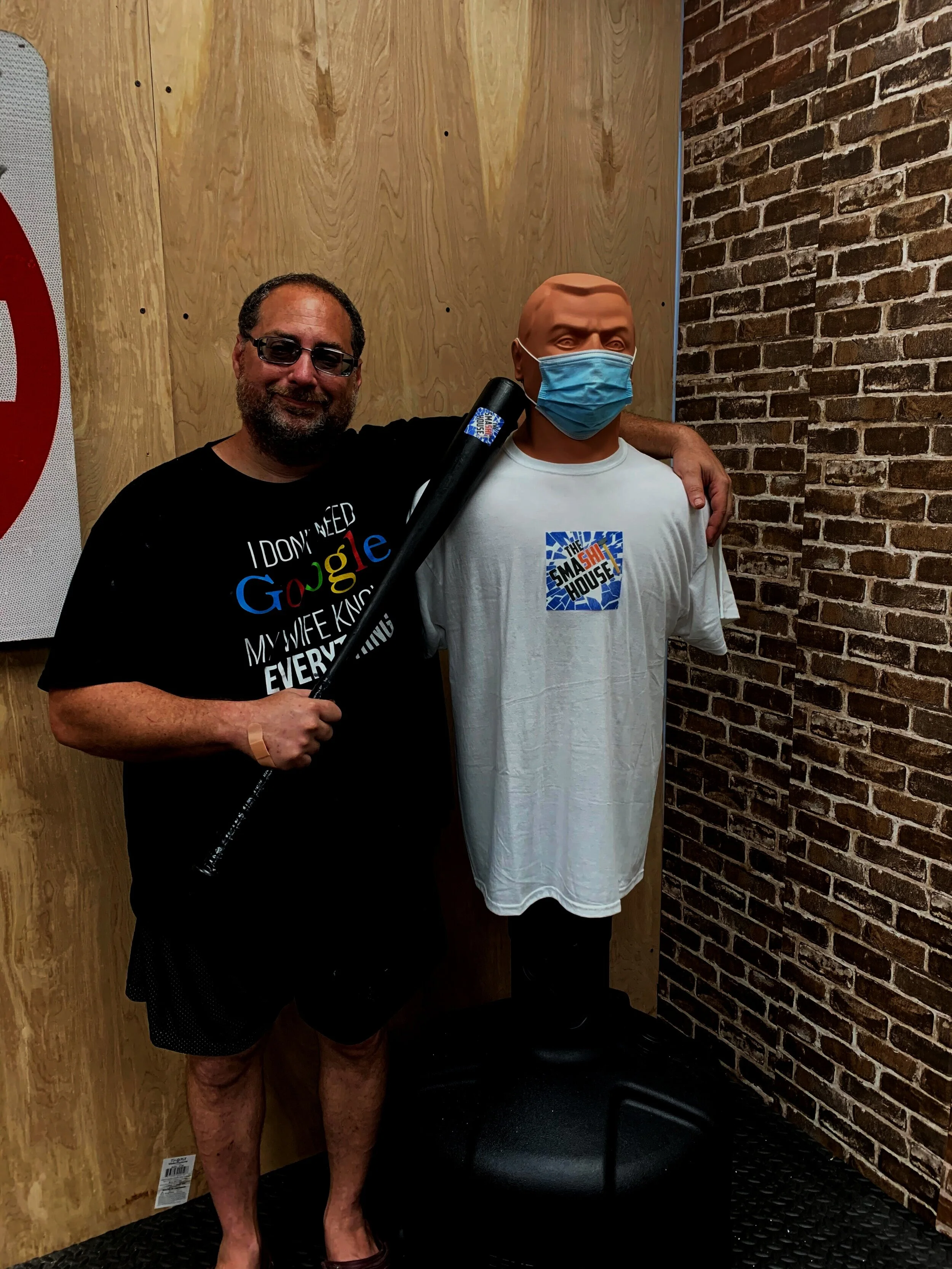 Our Store Mascot Smashit Bob Has Had The SmaSh**t Beaten Out Of Him By Our Guests With Everything From Spare Tires To Sledge Hammers. Bob Is A Trooper Though. He Always Reports Back To Work And Masks Up For COVID. For Bob’s Selfless Acts of Courage Under Fire We Happily Nominate Smashit Bob As Employee of The Month.