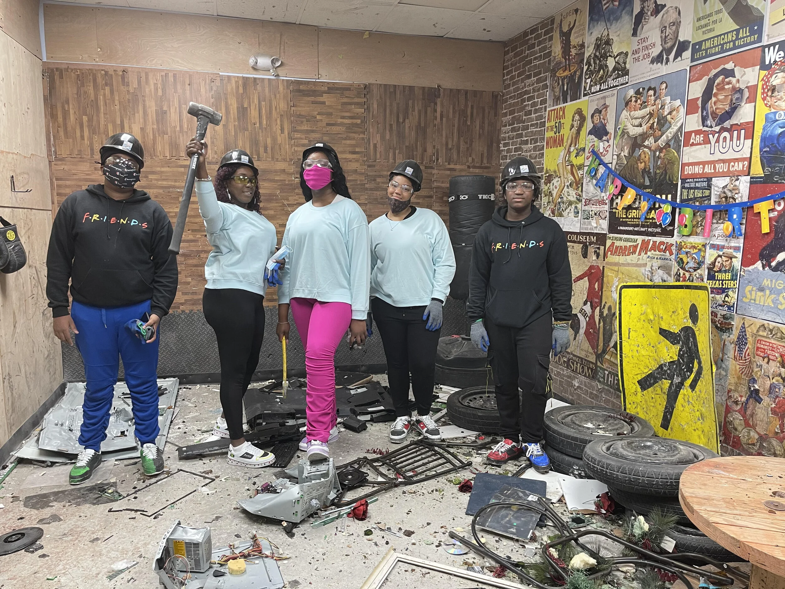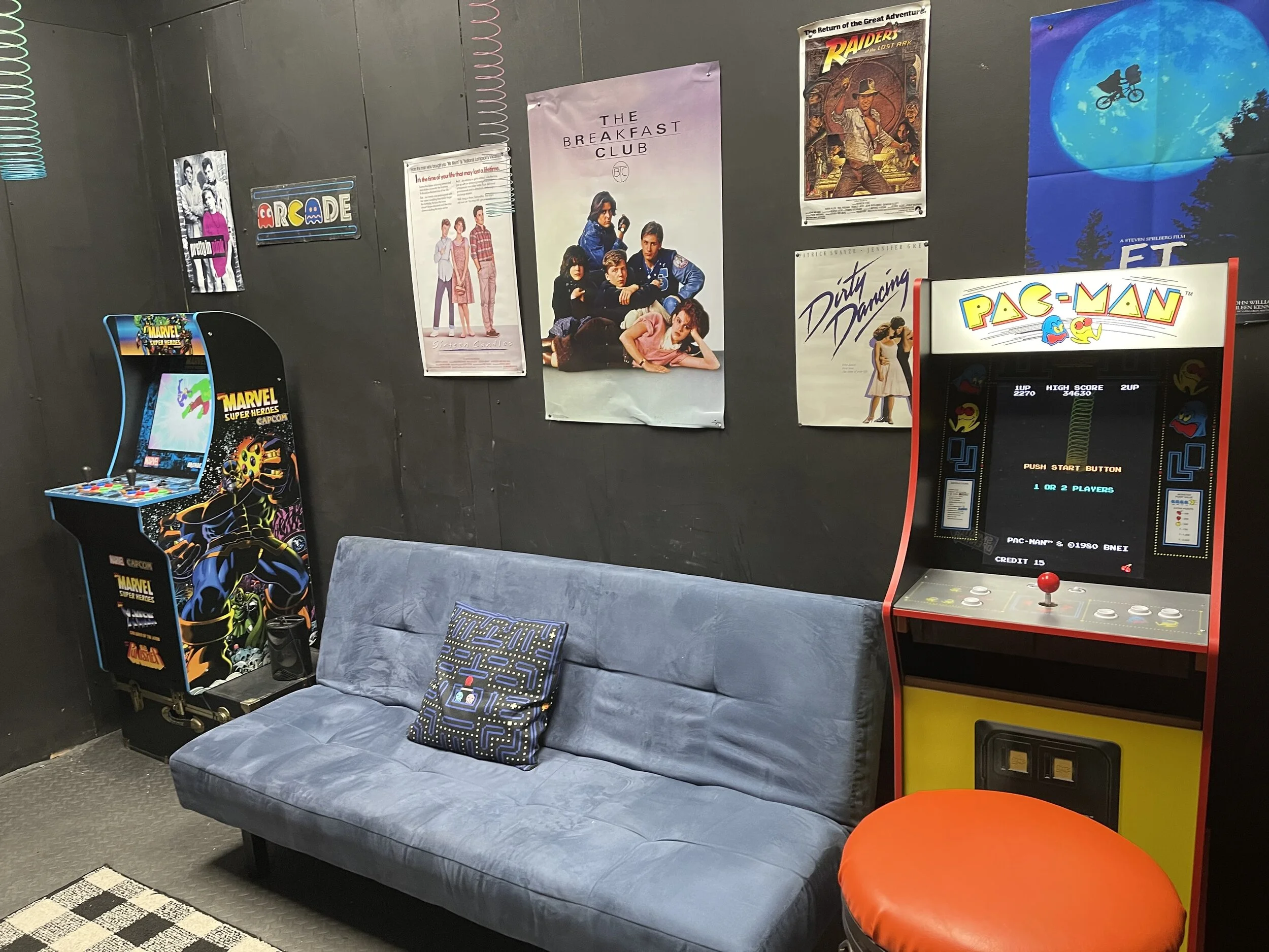 Industrial Pieces, Graffiti Wall, Smashit Tools, Safety Equipment, & 80’s Retro Game Room.